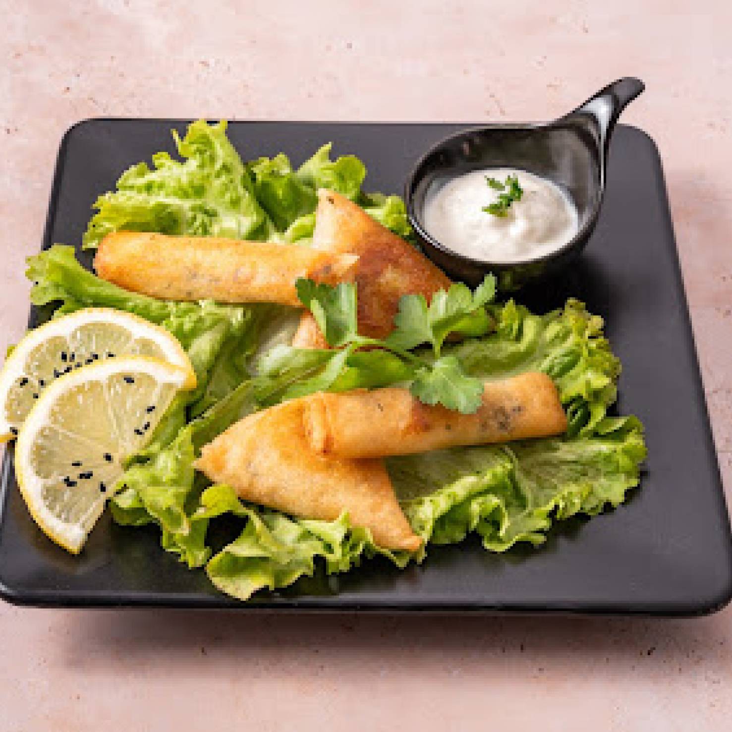 Fines feuilles croustillantes farcies à la viande hachée légumes, poulet légumes et deux cigares fromage